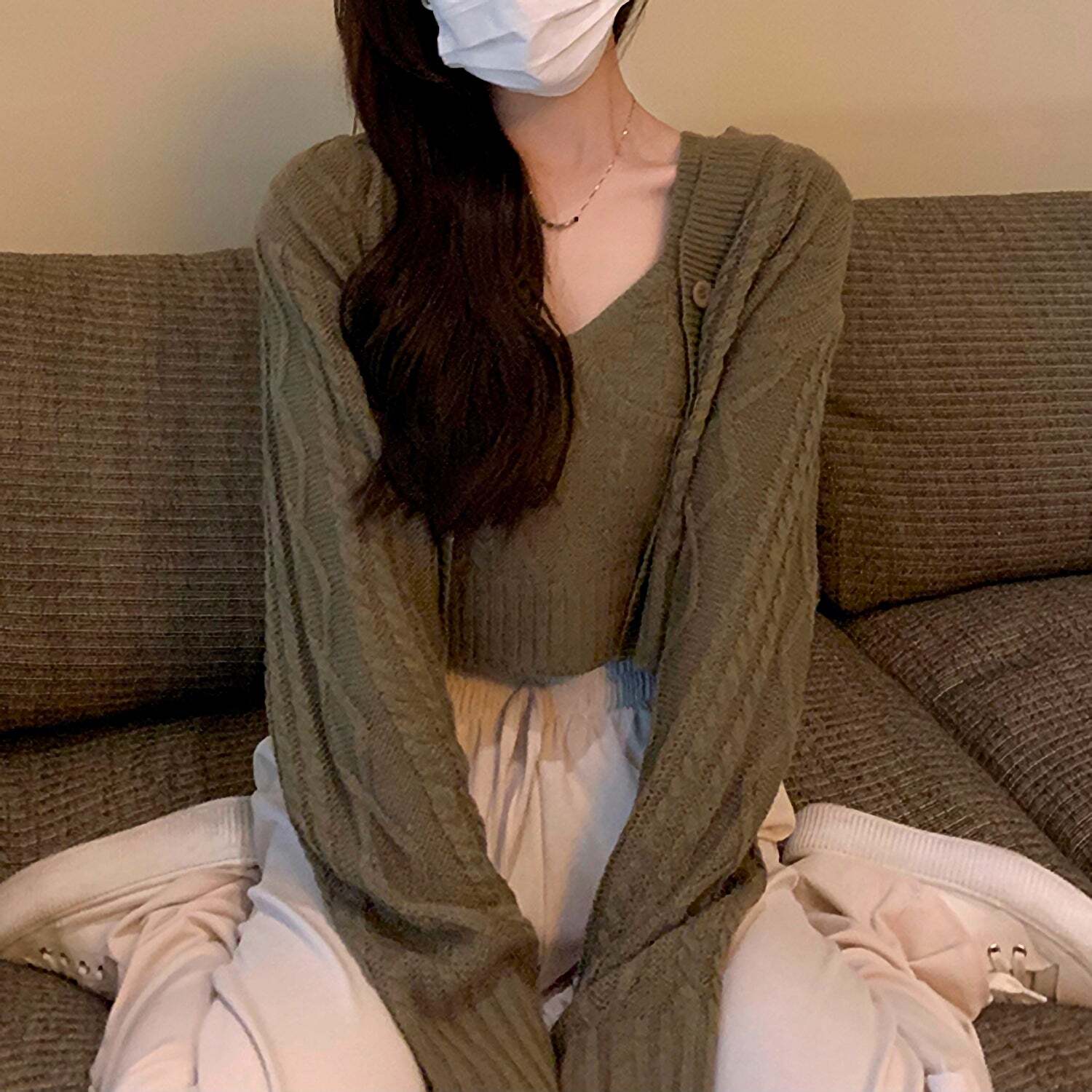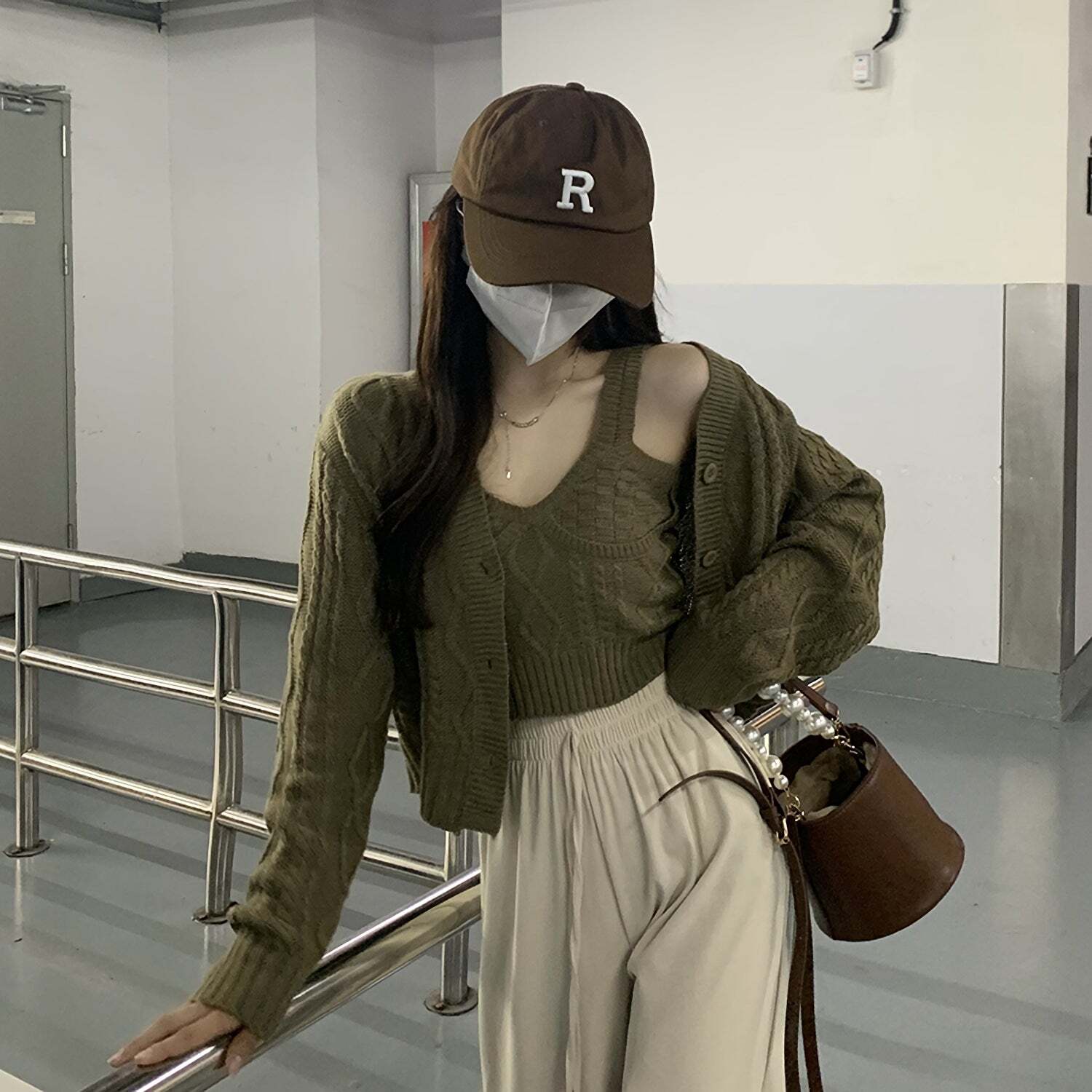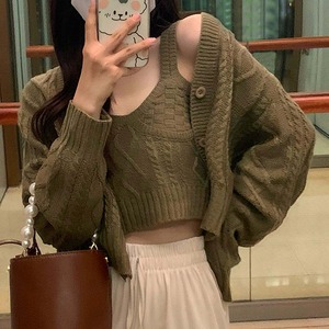 韓国カフェ 韓国ファッション 大人女性 プチプラ ニットキャミ&カーディガン セット レディース 20代コーデ 30代コーデ